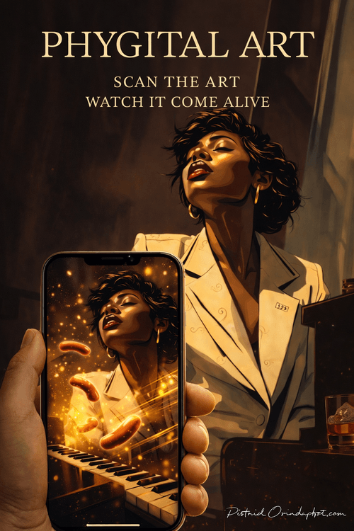 ✅ Scan it: a 3D animation bursts from the piece to your phone — the pianist plays, the rhythm pulses, the jazz unfolds before you