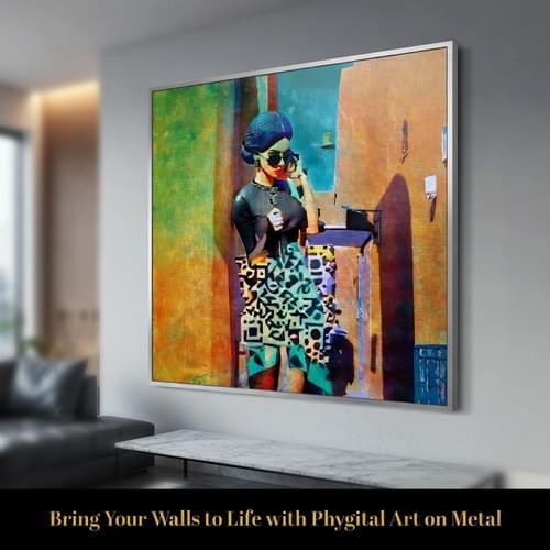Code of desire is an original acrylic painting on canvas, 90 x 90 cm. With its elegant female figure, warm architectural setting, and strong contemporary composition, this one-of-a-kind piece brings style, tension, and visual presence into any refined interior.
