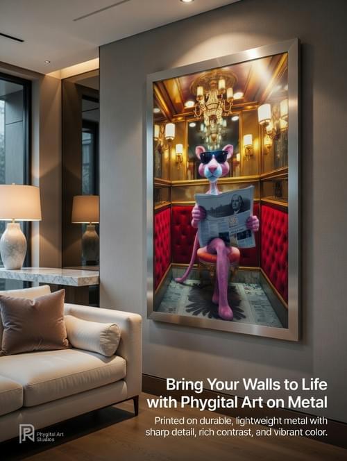 The Pink Panther – Limited Edition (42×60 cm / 16.5×23.6 in) is an interactive metal artwork with a hidden AR layer. At first it looks like a quiet premium piece, but once scanned, it comes alive with animation, sound, and hidden details, turning it into a strong conversation piece at home. The experience is simple: no app, no setup, just your phone and an almost invisible QR integrated into the design. Printed on high-quality aluminum, it offers vivid color, sharp detail, fade resistance, scratch resistance, fire resistance, and a lightweight, durable build that is easy to install, transport, and clean.