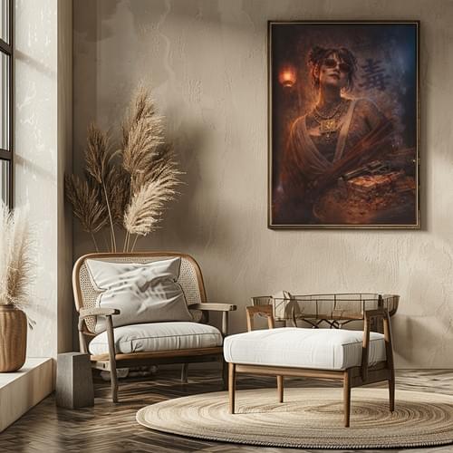 This piece blends dark elegance, Japanese noir atmosphere, feminine power, and cinematic tension into one striking visual statement. It is designed to stand out instantly in a refined interior, gallery setting, or collector’s space.